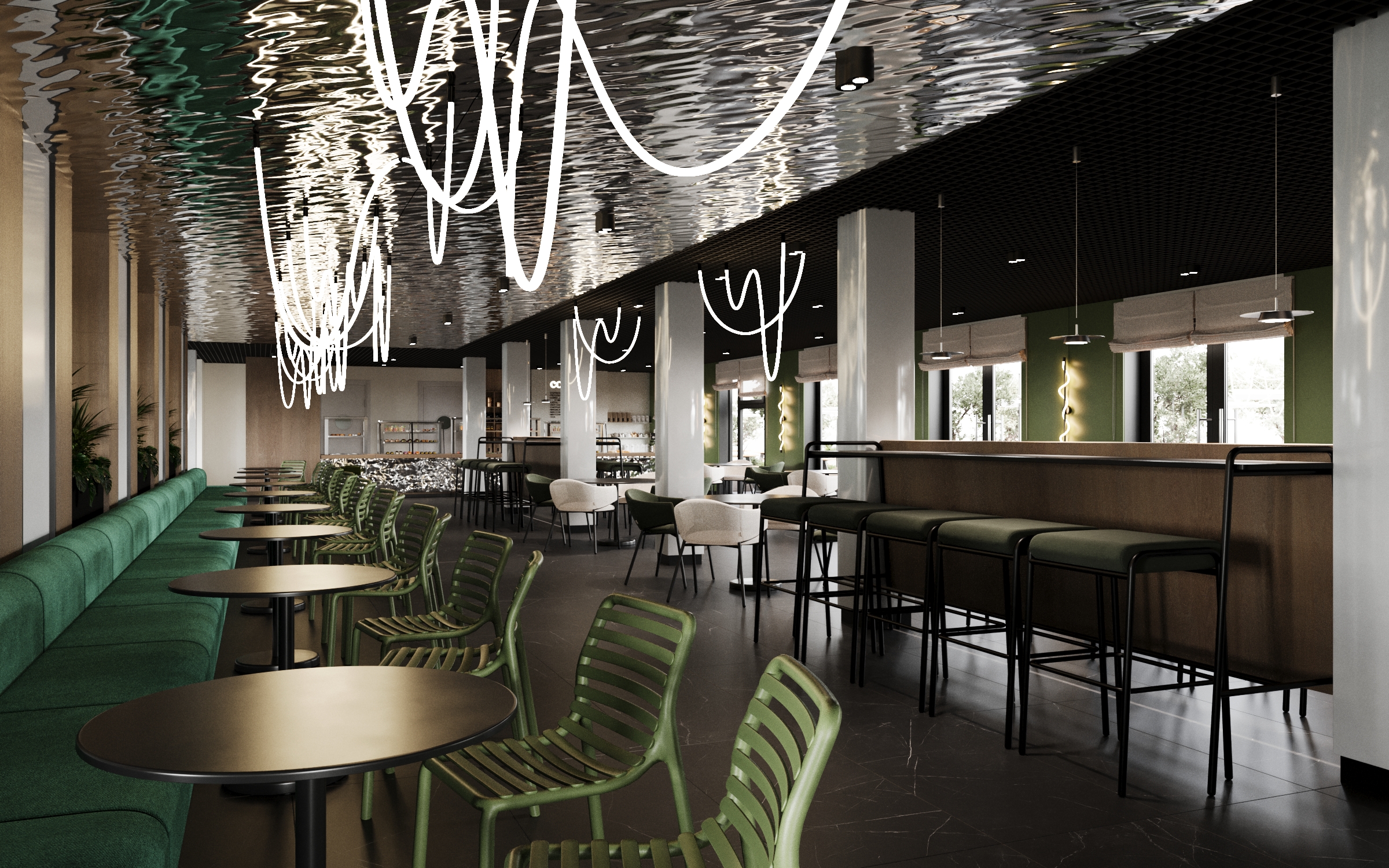 ← Назад Задача: дизайн комерческого помещения, визуализация (3d). Пакет услуг включал: дизайн-проект с технической документацией, визуализация (3d).