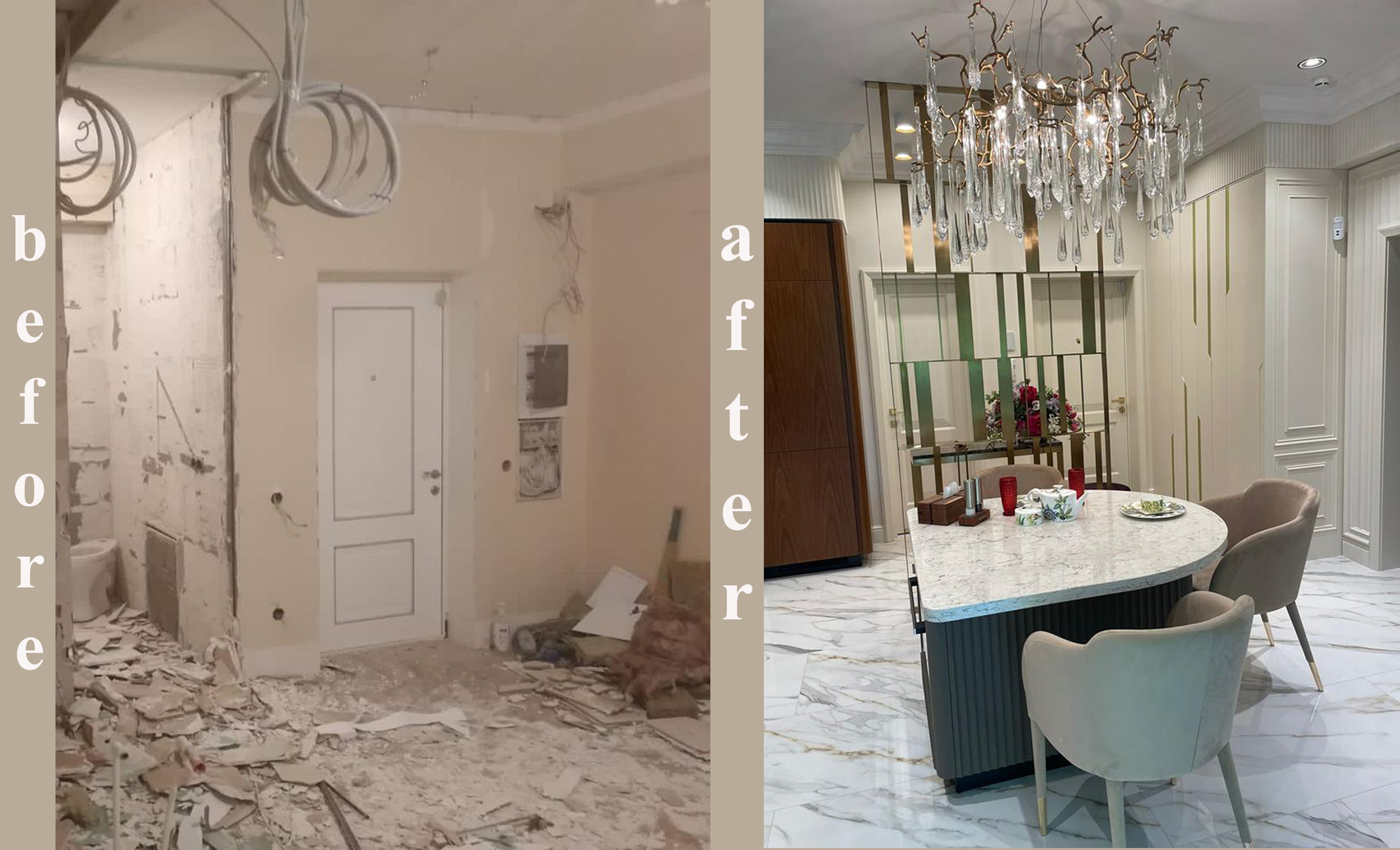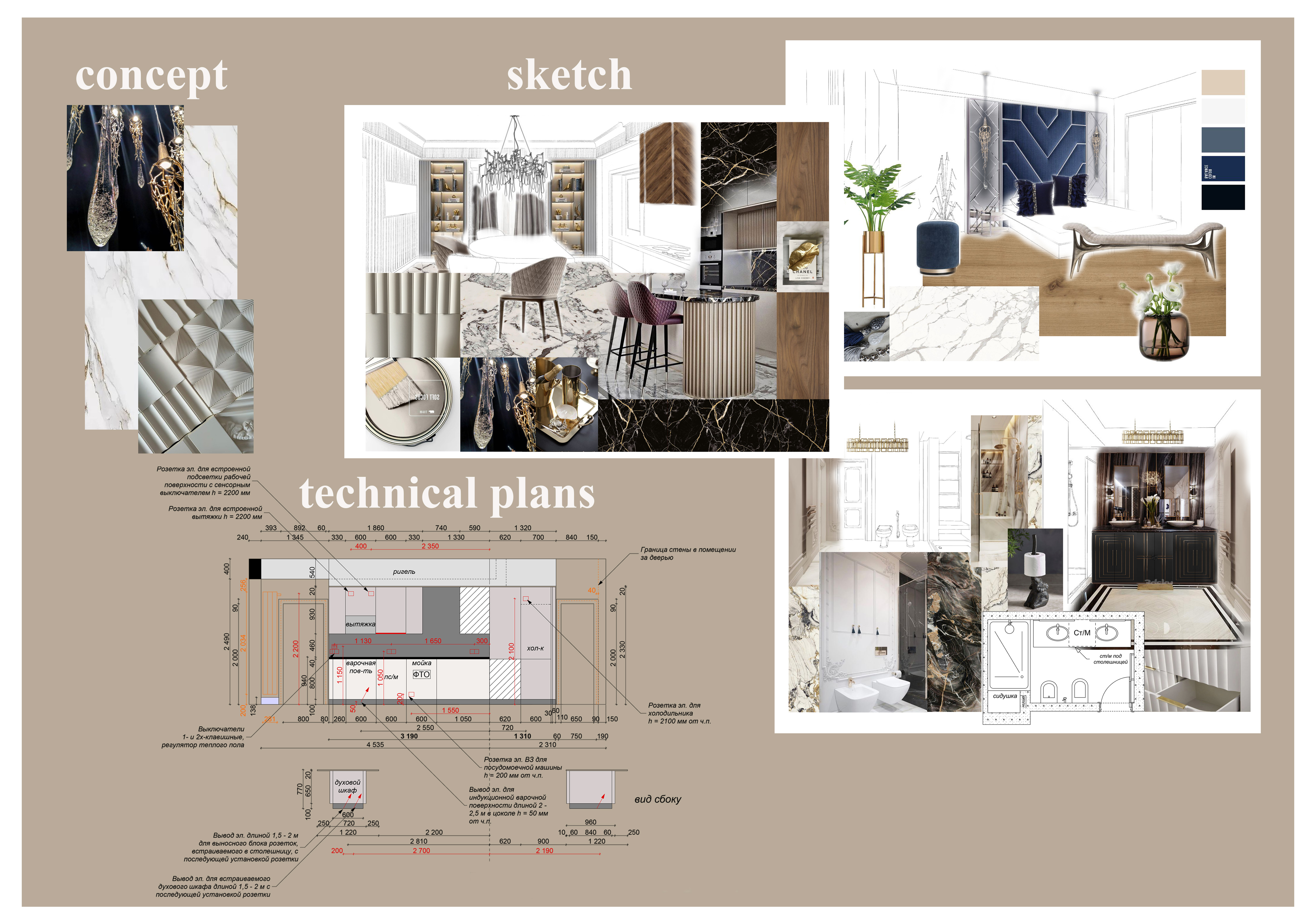 Над проектом работали полностью удалённо. Посетили объект в самом конце, когда уже собирали встроенную корпусную мебель. Семейная пара, их взрослая дочь и внучка собирались поехать отдохнуть в Геленджик в свою квартиру! Квартира куплена, лето уже через 4,5 месяца, но ремонт может испортить все планы! Задача стояла «простая» - превратить 80 м² уставшего интерьера в Maison de vacances – дом только для отдыха со средиземноморским флером. Ощутить атмосферу отпуска прямо с порога хозяевам помогли наши планировочные решения. Чтобы открыть прекрасный вид на террасу и сад, мы объединили прихожую зону с кухней-столовой, визуально разделив их легкой перегородкой из латуни. Светлые цвета интерьера с природными акцентами, хрустальная люстра, блики света, проникающие с веранды и отражающиеся в хрустале и зеркалах – помогли добиться ощущения легкости и воздушности пространства. Остров на кухне - как продолжение морской темы; вместо обычной ванны – большая душевая кабина и удобная тумба с двумя раковинами; выход на террасу из спальни хозяев – все это позволило избежать ощущения повседневности, о чем так мечтали наши Заказчики.